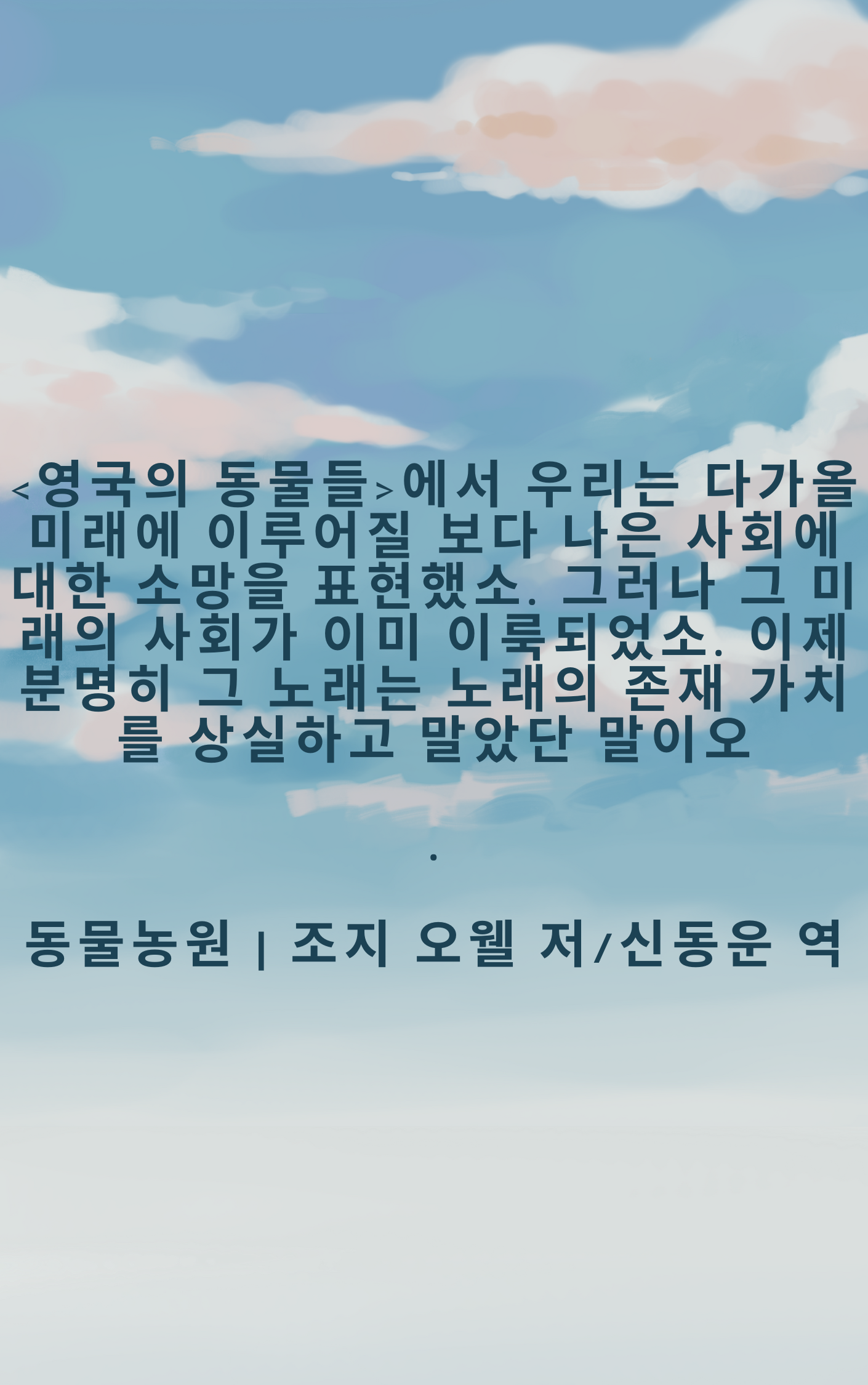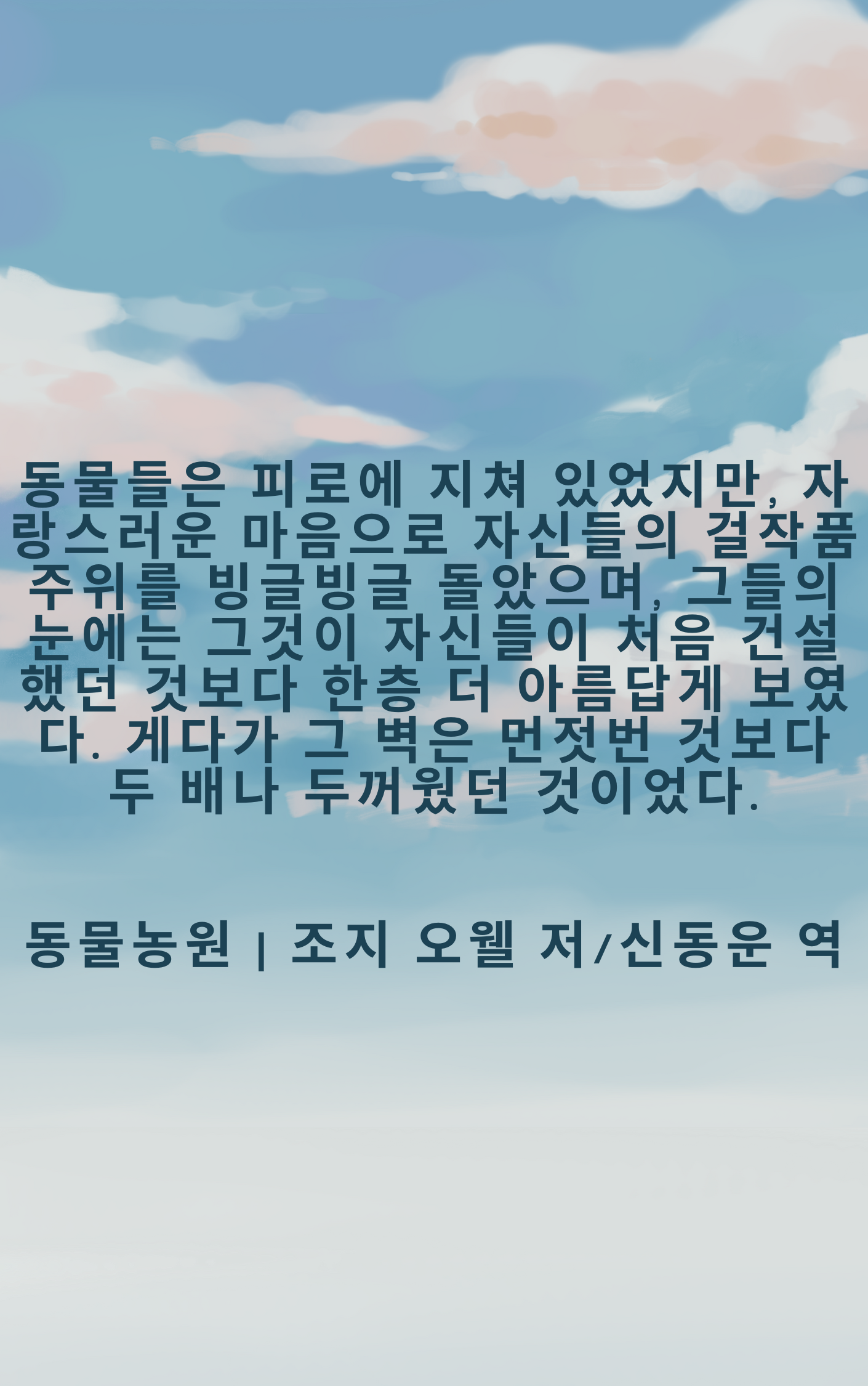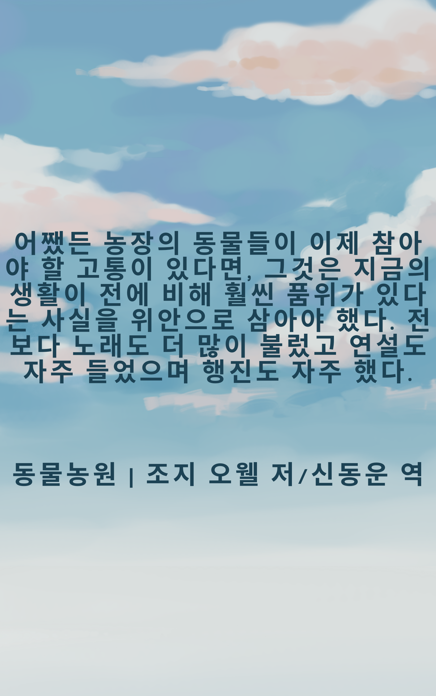 동물농장은 길지 않은 소설이다. 하지만 덮고 나면 쉽게 잊히지 않는다 평등이라는 단어가 어떻게 권력을 위한 장식으로 변하는지 이 책은 조용하게 보여준다