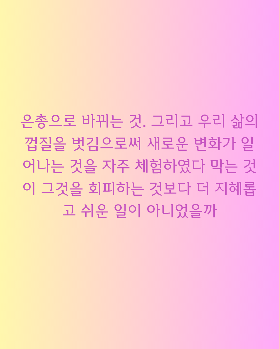 처음 읽으면 충격적입니다. 하지만 이 문장이 진짜 말하는 것은 다릅니다. 어떤 방법으로든 오늘을 버텨보라는 것입니다. 그리고 마지막 선택지가 항상 존재한다는 것을 알면서도 오늘을 살아가는 것이 용기라는 것입니다