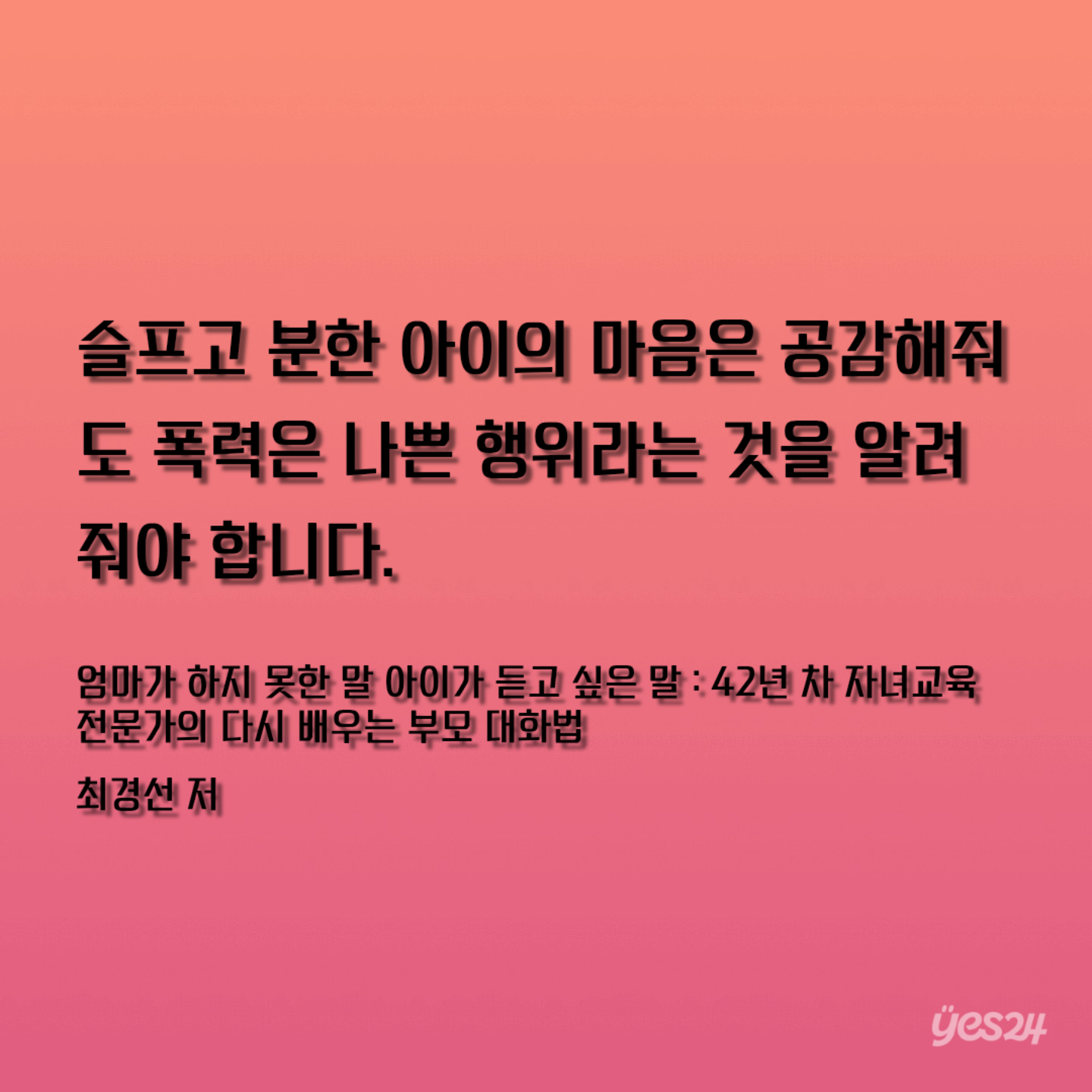 나도 상처받은 아이였습니다. 그 상처를 모르는 사이 아이에게 전달하고 있을 수 있다는 생각이 들었습니다. 그러나 저자는 끝낼 수 있다고 말합니다. 지금부터 달라지면 된다고.