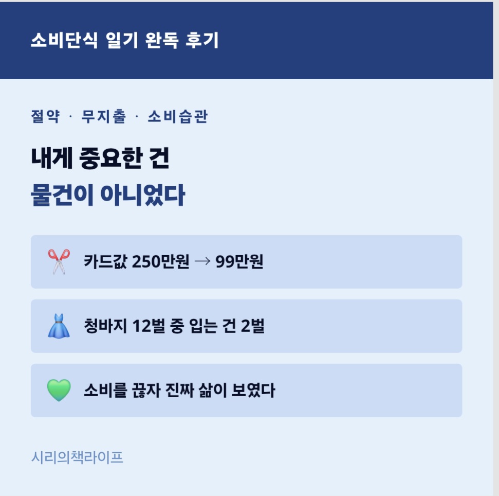 - 부제: 소비를 끊었다. 삶이 가벼워졌다.