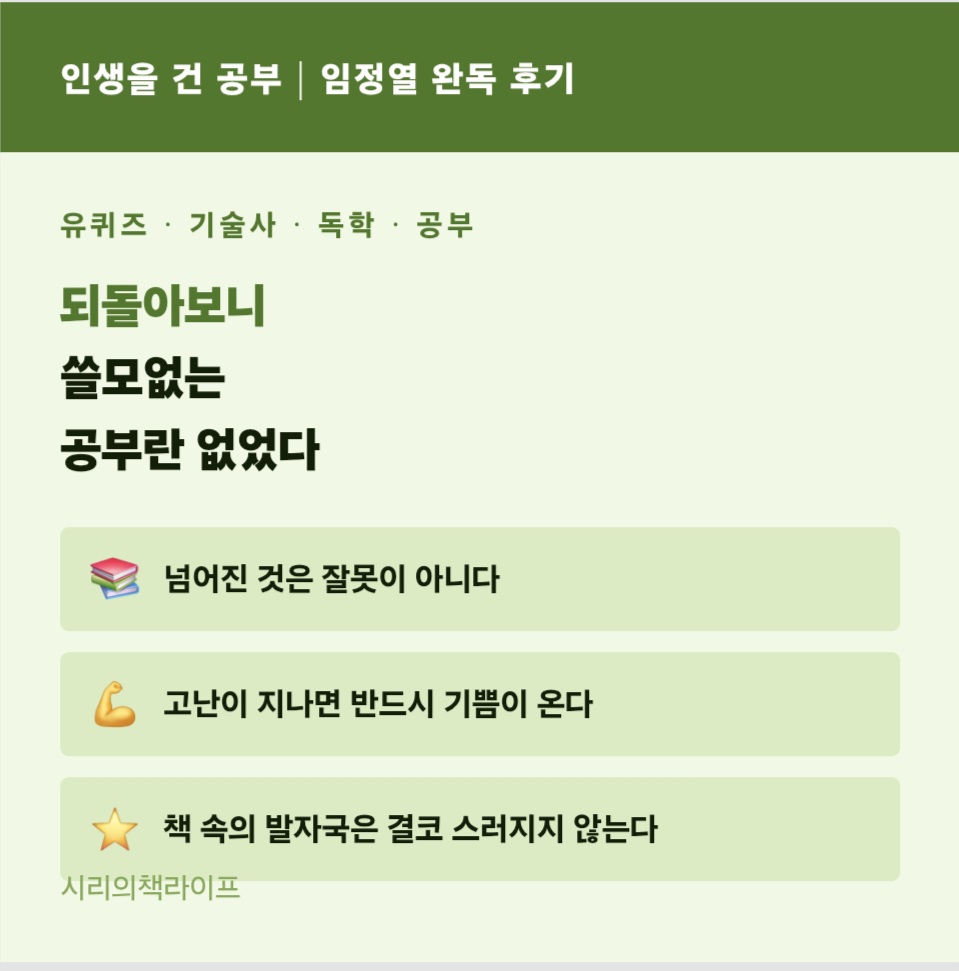 출처: 인생을 건 공부 / 임정열 저 / 위즈덤하우스 · tvN 유퀴즈 온 더 블럭 2025년 4월 30일 방송