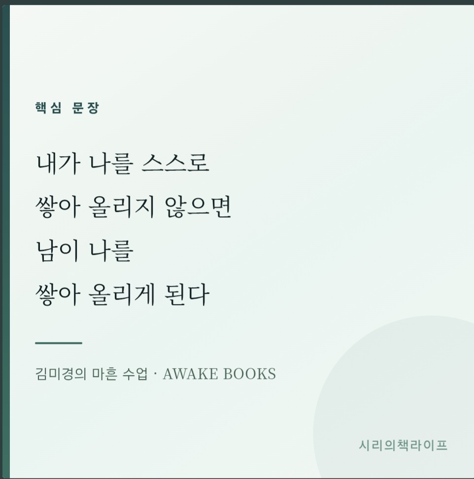 『김미경의 마흔 수업』은 단순한 위로 에세이가 아니다. 마흔이라는 나이를 재정의하고 이후의 삶을 어떻게 설계할 것인지에 대한 마인드셋과 실천 방법론을 함께 담은 책이다. 감성적인 문장보다 직접적이고 현실적인 언어로 쓰여 있어 공감보다는 자극에 가까운 독서 경험을 준다. 20만 부 이상 팔린 이유가 분명히 있는 책이다.