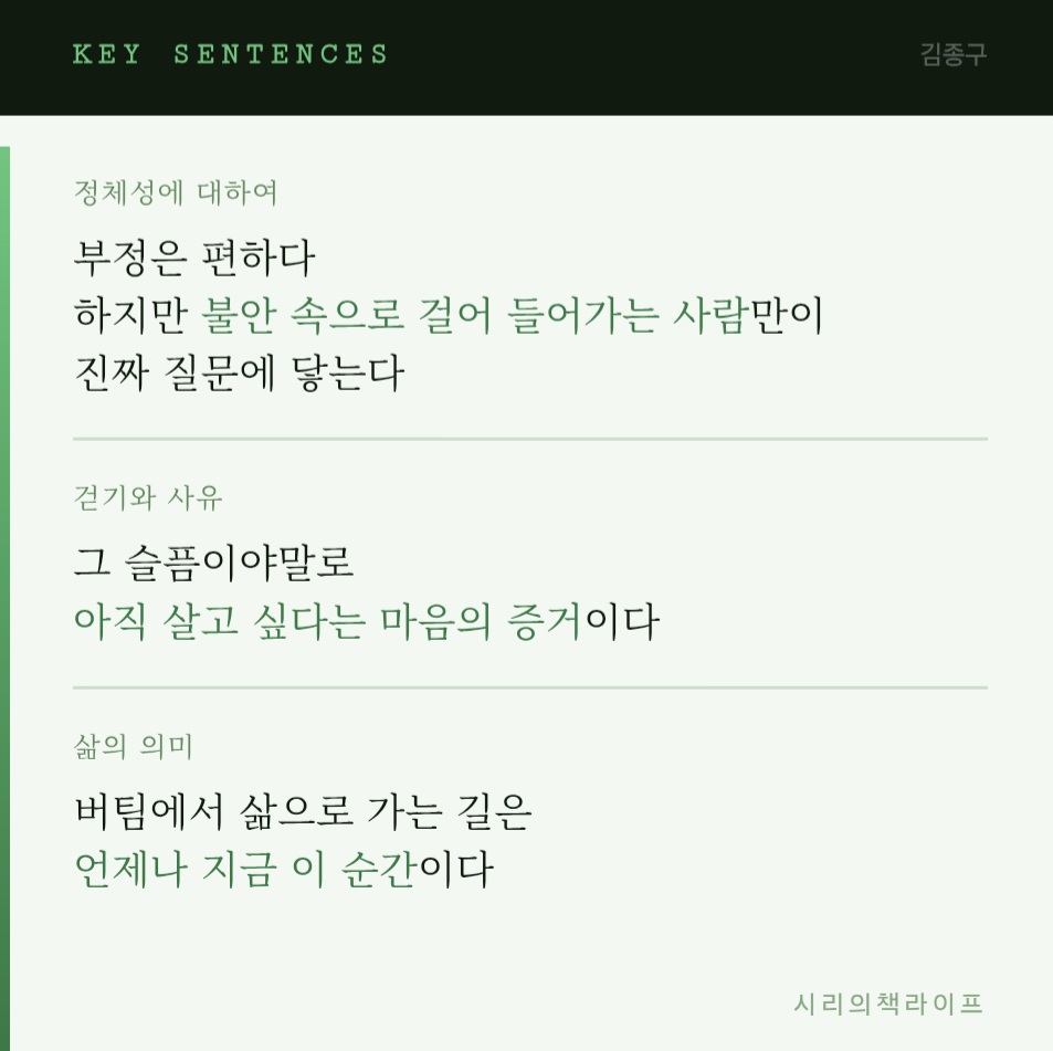 무엇이 우리를 인간으로 살게 하는가는 답을 주는 책이 아니다. 질문을 주는 책이다. 38개의 질문이 쌓여 결국 내가 어떻게 살고 싶은가라는 하나의 물음으로 돌아온다. AI가 더 빠르고 더 정확한 시대일수록 이 질문이 더 중요해진다.