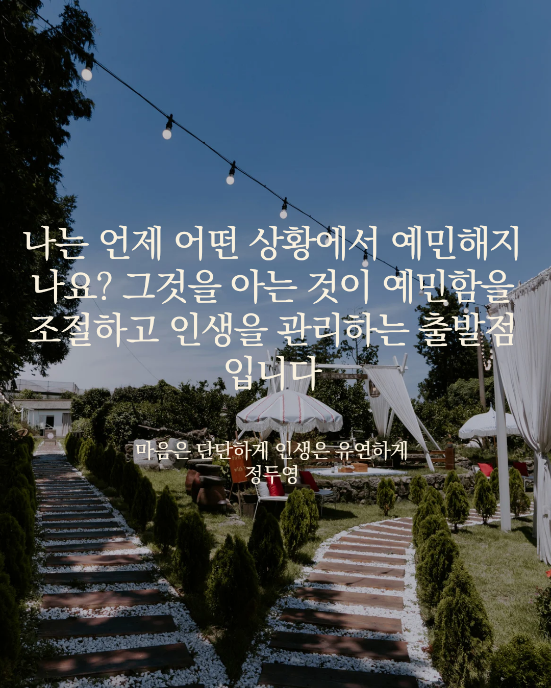 정두영 작가는 마음은 유연하게 인생은 단단하게라는 말로 삶의 태도를 정리한다. 흔들리지 않는 중심을 가지되 삶의 변화엔 유연하게 반응하라는 것이 핵심이다.