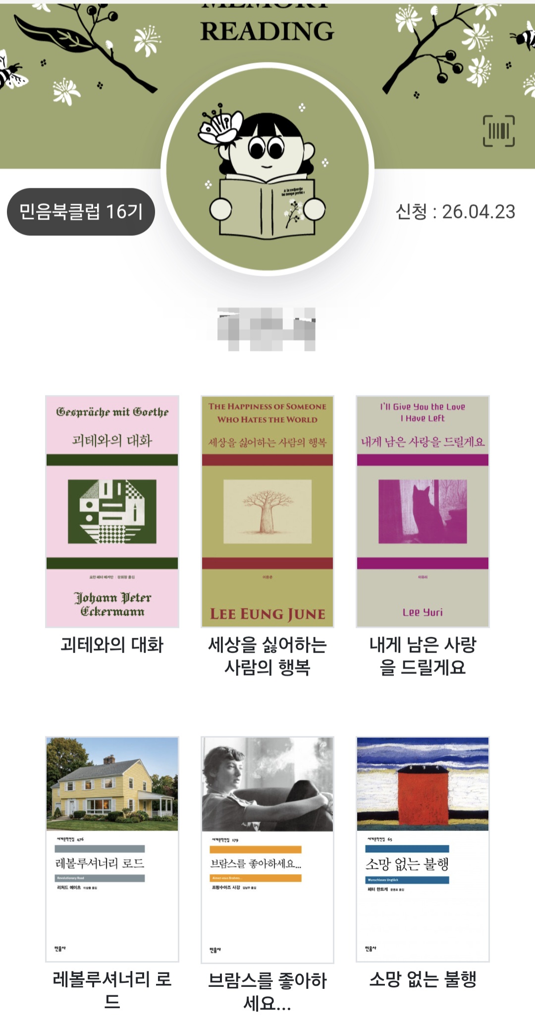 민음사 북클럽은 단순히 책을 할인받는 서비스가 아니다. 책을 좋아하는 사람들이 모이는 커뮤니티에 들어가는 것에 가깝다. 다음 기 모집이 열리면 알람 신청을 먼저 해두길 권한다. 모집 오픈과 동시에 마감되는 경우가 많으니 미리 준비해두는 게 좋다.