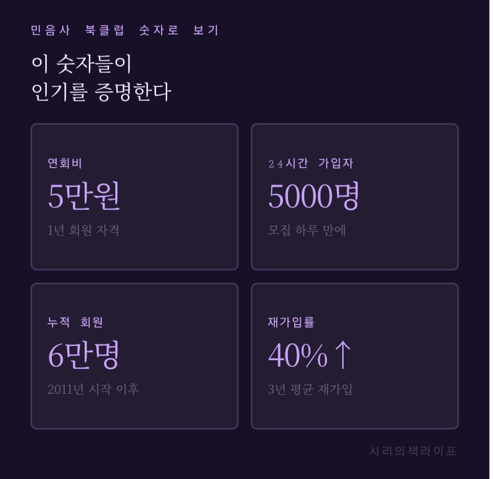 책을 좋아한다면 한 번쯤 들어봤을 이름이 있다. 민음사 북클럽이다. 매년 모집 때마다 서버가 터질 만큼 사람이 몰리는 국내 최대 규모의 출판사 유료 멤버십이다. 직접 16기로 가입하면서 알게 된 것들을 정리해본다.